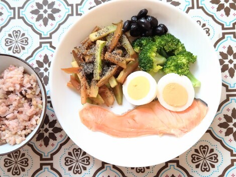 パンガシウスの煮付け・温奴・鶏ひき肉とマカロニのサラダ