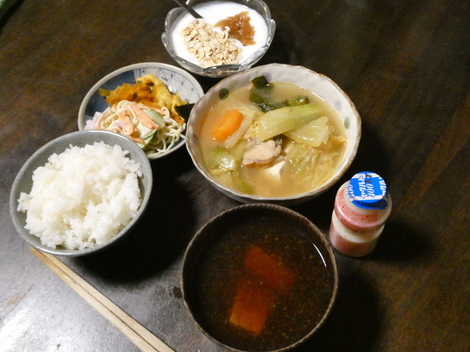 今朝は、ヨーグルト、ヤーコン、ゆで卵、味付けのり、菜の花おひたし、大根ハリハリ漬け、味噌汁で朝ごはんを食べました😋