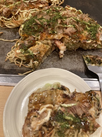大阪に来たなら是非桃太郎のお好み焼きをご賞味あれ。😋最近はインバウンドもちらほら。