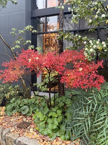 JR福島駅近くのホテル『MOXY』で軽食。サーモン、アボカドのラップなかなか😋毎月通るこのホテルの外周の植え込みが好き。ワビスケ、ドウダンツツジ、ローズマリー💕