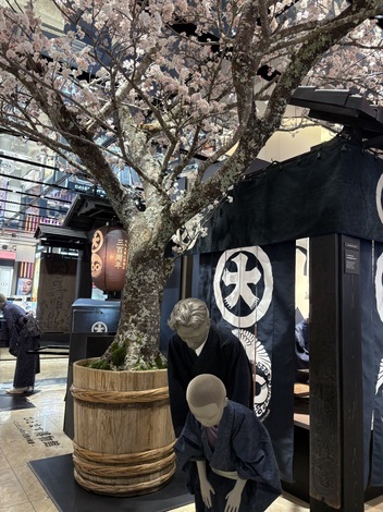 これは店内の飾り付け、腰の低い番頭さんと丁稚どんもリアル。🤩桜の木がゴージャス❣️心斎橋大丸に用事があったのでランチは『シェイクシャック』