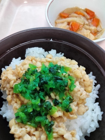 ご飯に味噌汁、納豆などです。