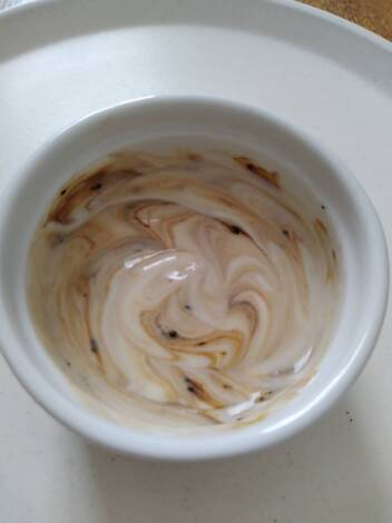 まるごとSOYカスピ海ヨーグルト:インスタントコーヒーをトッピングしてかき混ぜて食べました。
