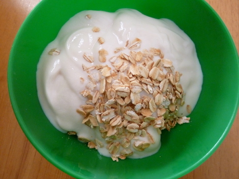 オートミールと一緒に。オートミールが水分を含むまで、ちょっと時間を置きました。