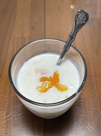 今日はヨーグルトのねばり出しの際にマーマレードを一緒に混ぜて、最後に皮をトッピング。