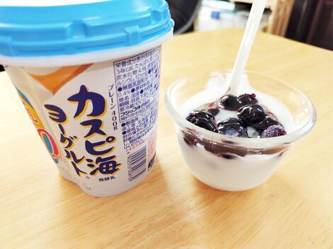 ②「カスピ海ヨーグルト 脂肪ゼロの冷凍ブルーベリー&はちみつ載せ」