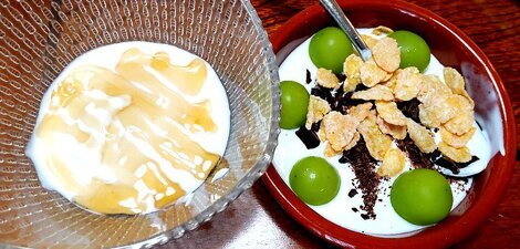 お食事ヨーグルトは旬の果物やいつものシリアルやグラノーラで簡単に幅広いアレンジがきくので食べ飽きません。チョコレートのカリカリ感、シリアルのサクサク感、カスピ海ヨーグルトならではのもっちりな美味しさのバランスが癖になります。