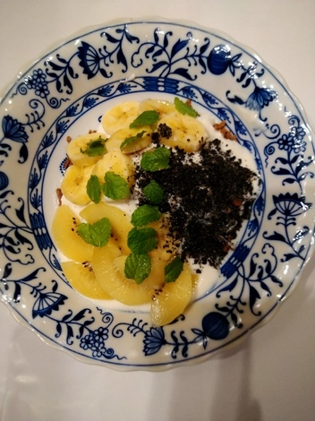 ケロックオールブラン、まるごとSOYヨーグルト、バナナ、キウイ、