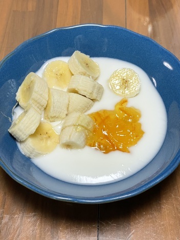 今日はバナナに伊予柑マーマレードを添えて。