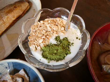 今日は、オートミールと抹茶を入れて食べました😋
