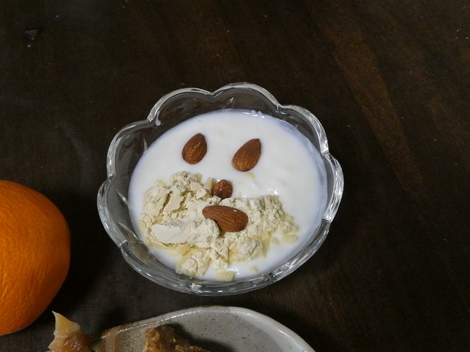 今朝は、おからパウダーとアーモンドを入れて食べました😋