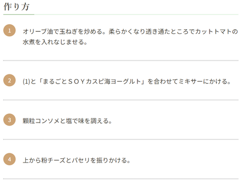 肝心のお味ですが、トマトの酸味がしっかりありながらも、「まるごとSOYカスピ海ヨーグルト」のとろみとコクがスープに加わって、想像以上にクリーミー!