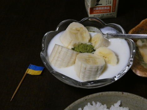 今朝ですが、バナナと抹茶を入れて食べました😋