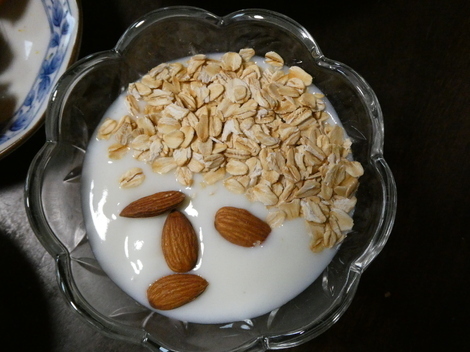 今朝は、おからパウダーとアーモンドを入れて食べました😋
