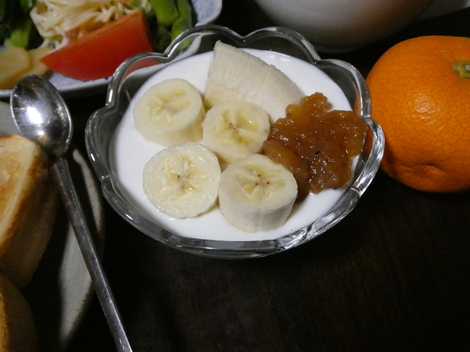 バナナとリンゴジャムを入れて食べました🍎(^m^)/