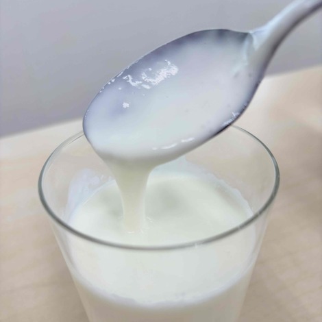 見た目は牛乳そのもの、といった感じですが、「カスピ海ヨーグルト」のねばりが合わさって、とろみのあるヨーグルトドリンクに仕上がります!