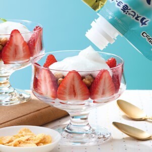 フルーツをカットすることなくフルーツにまとわせてヨーグルトが食せます。