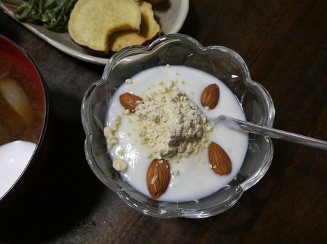 今朝は、おからパウダーと抹茶を入れて食べました😀
