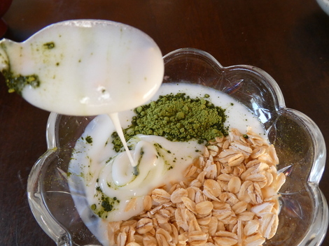 今朝は、オートミールとおからパウダーを入れて食べました😋