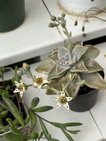 昨年末に知人からいただいた「おぼろづき」が花を咲かせたこと。