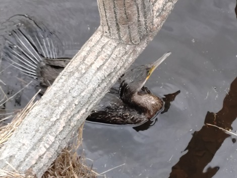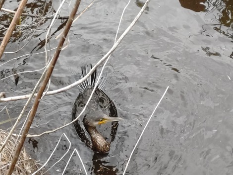 小さな堀があるんだけど、非常に珍しく川鵜が居た