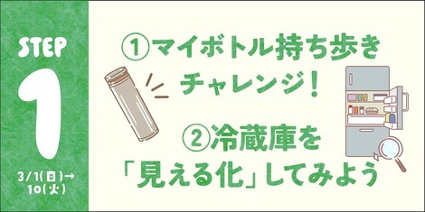 多くの方が挙げてくださった「マイボトル」と、すぐにチャレンジできそうな「冷蔵庫の見える化」を選ばせていただきました。