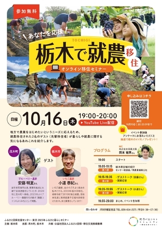 今回は10月16日(木)19時開催の若者向けオンライン移住セミナー「あなたを応援 栃木で就農」のご紹介です!