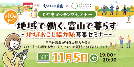 【視聴者の中から抽選で富山の名産品プレゼント♪】とやまマッチングセミナー「地域で働く、富山で暮らす 〜地域おこし協力隊募集セミナー〜」