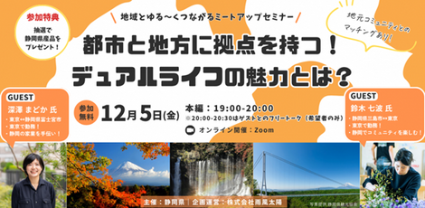 ■12月5日(金)「都市と地方に拠点を持つ!デュアルライフの魅力とは?」セミナーの詳細・お申し込みはこちら⇩
