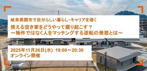 本イベントでは、空き家活用の事例などで注目されている「さかさま不動産」の水谷さんをゲストに、関市の魅力や課題、空き家活用の仕組みやコーディネーターの役割などについて伺います。オンラインでの開催です!少しでも興味のある方、まだ応募を決めていない方などもお気軽にご参加くださいね♪