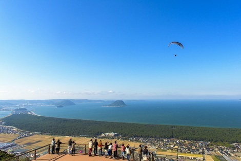市内の鏡山展望台からは虹の松原や唐津湾、点在する島々の絶景を一望できる