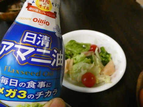 今朝は、サラダにMCTドレッシングをかけアマニ油をひと回しです😋