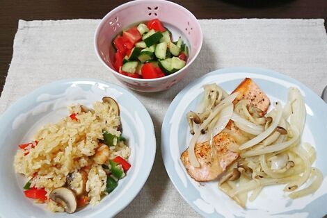 老夫婦じゃ日常使いしませんが、父の日に息子が作りに来てくれたメニューには適度にオリーブオイルが使われてました。油脂で肉を受け付けないオヤジ用に魚メインのメニューです。