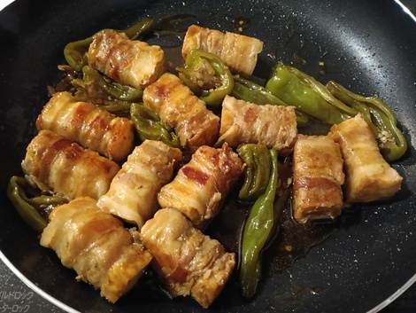 ごま油で厚揚げの豚肉巻きを焼きました(⁠^⁠^⁠)