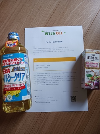 ポイントくじで頂きました。ありがとうございます❣️MCTオイル、サラダに使ってみます