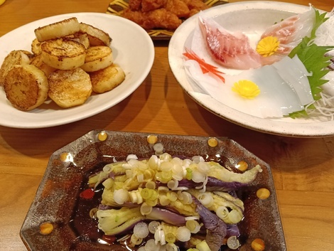 「しょうゆにオリーブオイルをかけて、オリーブオイルじょうゆの完成♪お刺身につけて食べれば、風味とコクがワンランクアップするのでおススメです!」