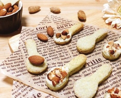 オリーブオイルと青汁、アーモンドのクッキーを作りました˚✧₊⁎