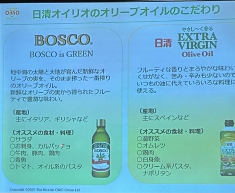 今回のイベントでは、オリーブオイルの産地や収穫時期を学んだり、実際に食べ比べたり、自分好みのオリーブオイルや料理との相性を考えたり…オリーブオイルの風味の違いについて楽しく学んでいただきました。