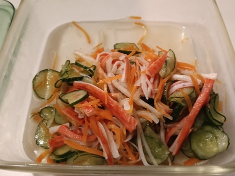 残り物ナムルにごま油、甘酢を加えて酢の物にアレンジ(⁠^⁠^⁠)❤️美味しく食べきりました♪