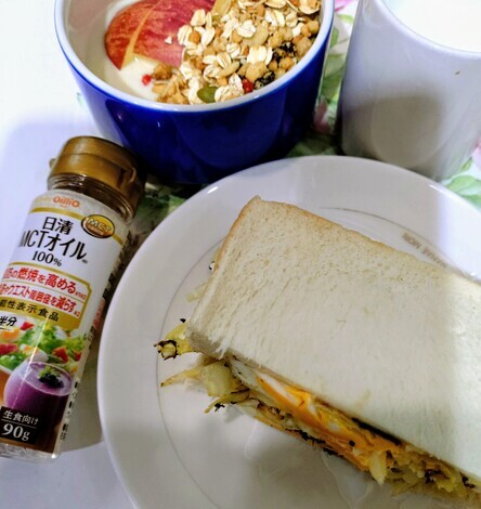 サンドイッチと豆乳ヨーグルトにMCTオイルを