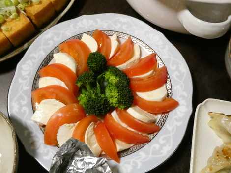 オリーブオイルをトマトとモッツアレラチーズのカプレーゼにかけました😄