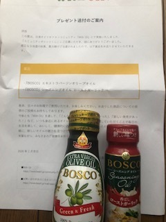 ポイントで応募したオイルセット当選しました。我が家の必需品なのでとても嬉しいです。どうもありがとうございます。