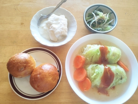 ロールキャベツの仕上げにガーリックオイルをかけました。