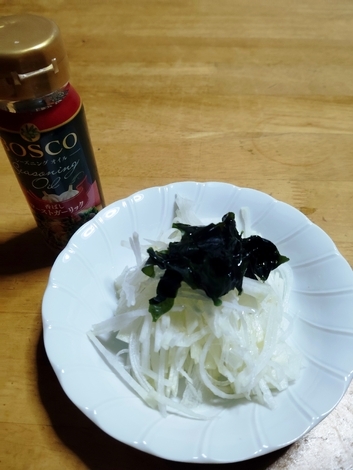 大根サラダにガーリックオイルをかけて食べました。