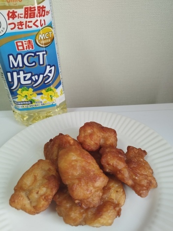 2)作った感想&食べた感想:初めて日清MCTリセッタを使って揚げ物をしましたが、唐揚げがカラッと揚がって、食べた時も油っぽさを全く感じず、すごく美味しく作ることができました!