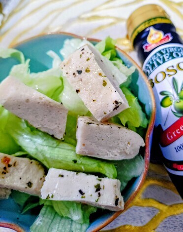 チキンサラダにオリーブオイルを