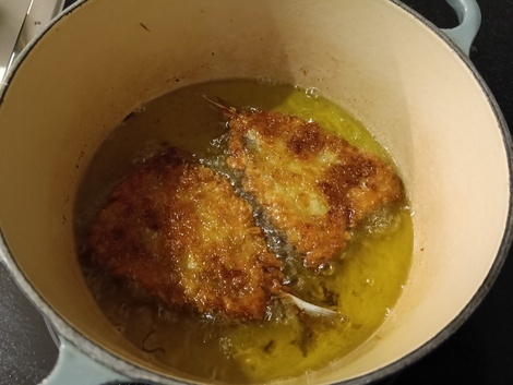 贅沢にオリーブオイルで揚げ物を(^^)
