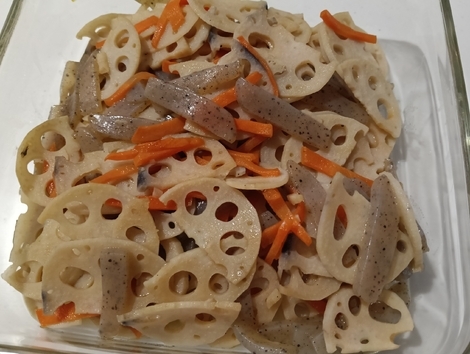 ごま油で蓮根きんぴらを炒めました(⁠^⁠^⁠)