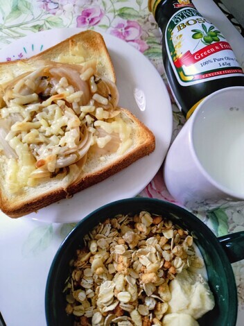 豆乳ヨーグルトとトーストにオリーブオイルを