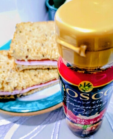 ハムサンドにガーリックオイルを